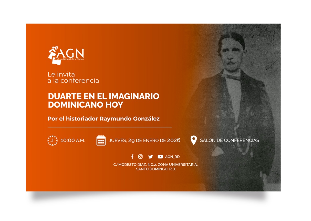 SANTO DOMINGO, RD.- El Archivo General de la Nación (AGN) tiene el honor de invitarles a la conferencia «Duarte en el imaginario dominicano hoy», a cargo del historiador Raymundo González, un espacio de reflexión histórica y cultural de gran interés para el público nacional.