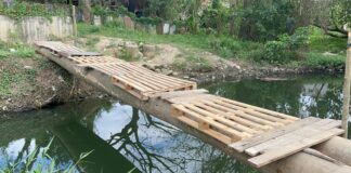Comunitarios construyen puente de palmeras para que niños no arriesguen la...